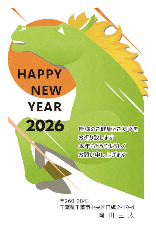 こちらの絵柄は光沢紙年賀ハガキ専用にデザインしています。ハガキ代は1枚10円ほど上がりますが、仕上がりの品質は大きな差を感じて頂けると思います。
