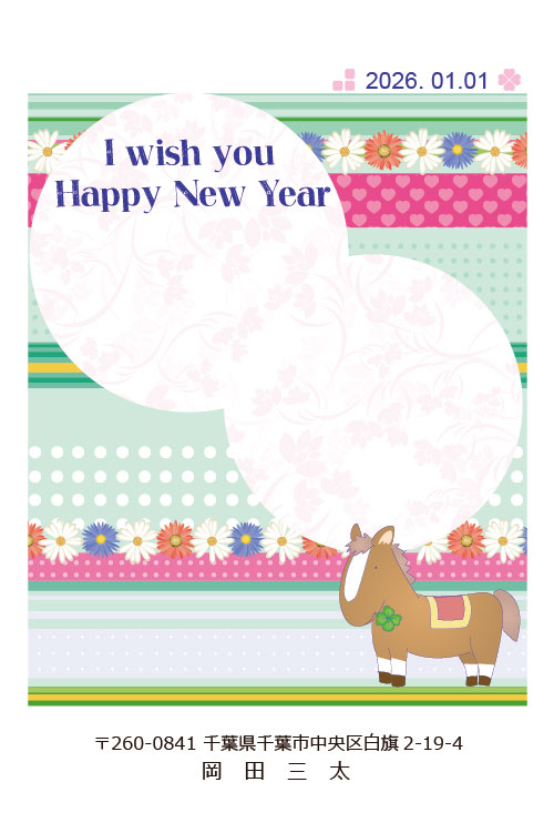 この絵柄では最大5行ほどを挨拶文をお入れすることが可能です。ご希望の際は「お申込みフォーム備考欄」にてご指示下さいませ。