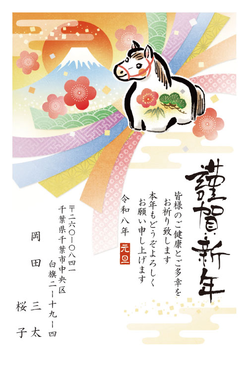 2026年午年(うまどし)、定番デザイン年賀状K-2です。