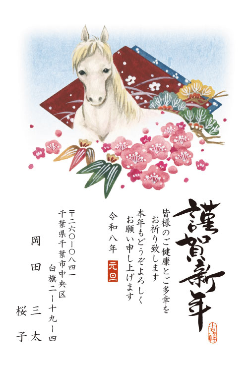 2026年午年(うまどし)、定番デザイン年賀状「K-21」です。