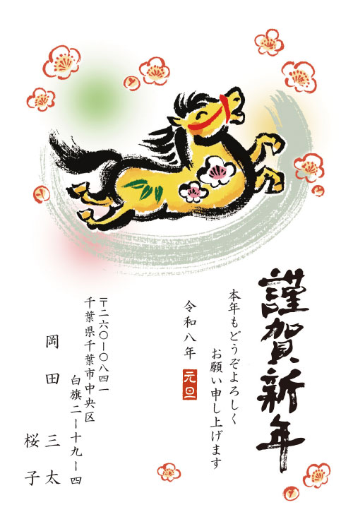 2026年午年(うまどし)、定番デザイン年賀状「K-33」です。