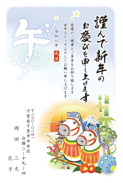2026午年(令和8年)和風デザインWシリーズ。笑顔と華やかさを持つ和風タイプ。