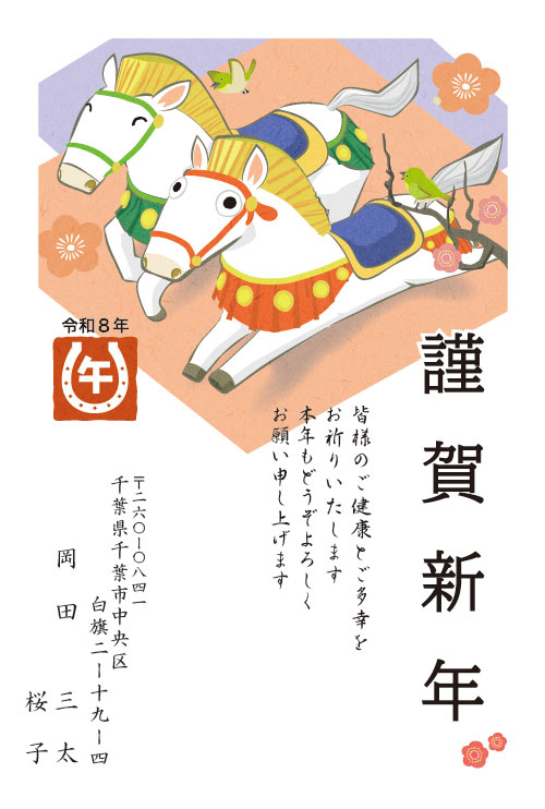 2026午年(令和8年)和風デザインWシリーズ。笑顔と華やかさを持つ和風タイプ。