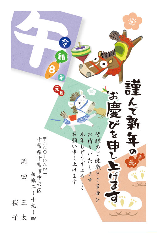 2026午年(令和8年)和風デザインWシリーズ。笑顔と華やかさを持つ和風タイプ。