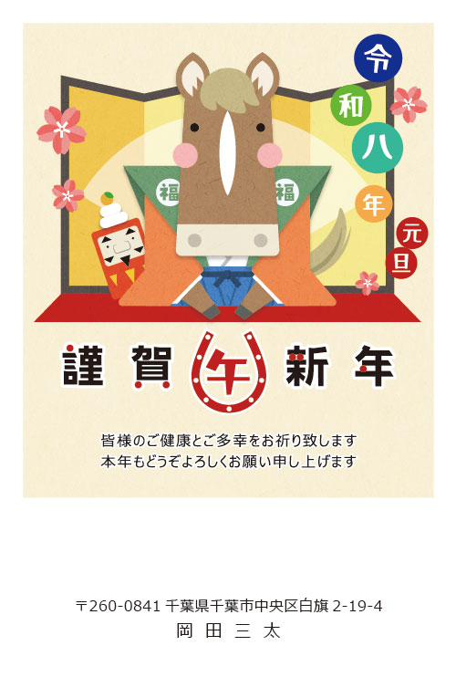 2026午年(令和8年)和風デザインWシリーズ。笑顔と華やかさを持つ和風タイプ。