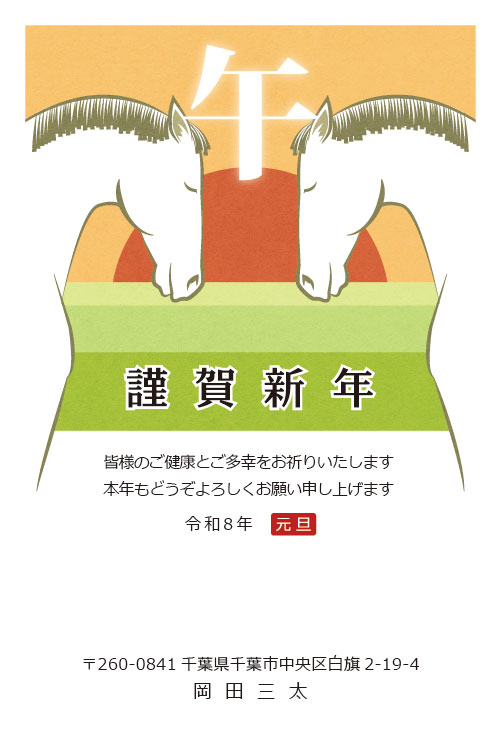 2026午年(令和8年)和風デザインWシリーズ。「らしさは基本に」笑顔と華やかさをプラスした年賀デザイン。