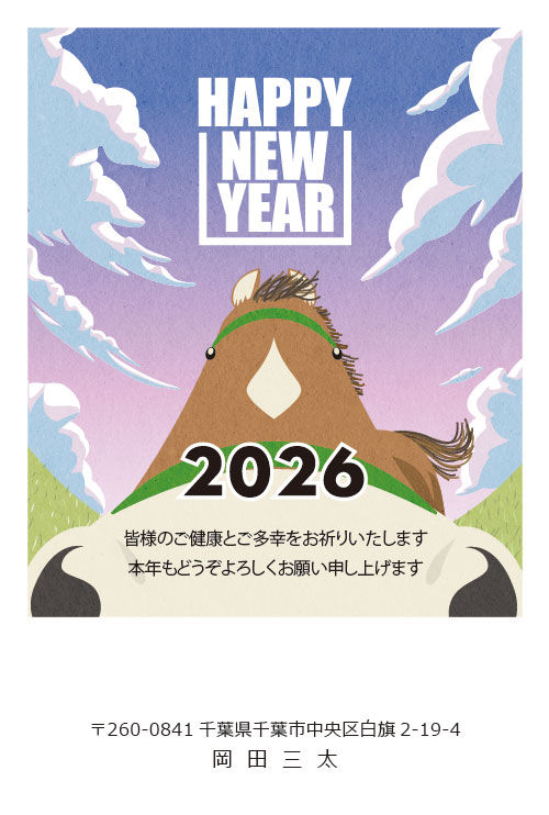 2026午年(令和8年)和風デザインWシリーズ。「らしさは基本に」笑顔と華やかさをプラスした年賀デザイン。