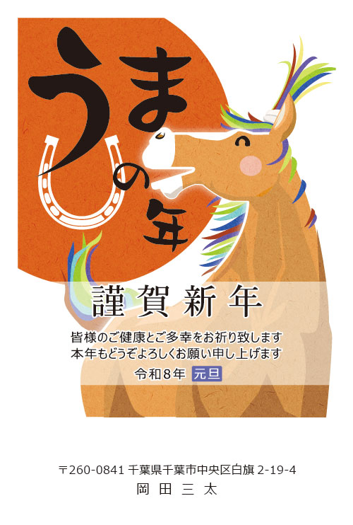 2026午年(令和8年)和風デザインWシリーズ。「らしさは基本に」笑顔と華やかさをプラスした年賀デザイン。
