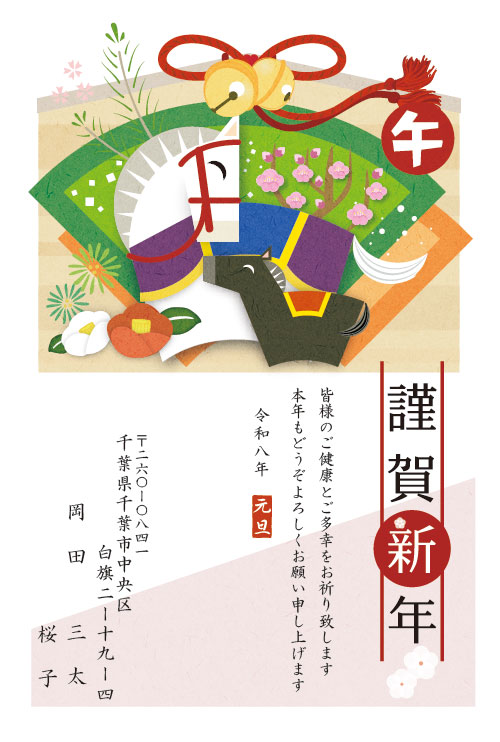 2026午年(令和8年)和風デザインWシリーズ。「らしさは基本に」笑顔と華やかさをプラスした年賀デザイン。