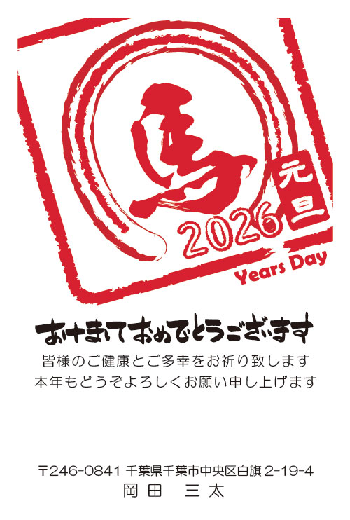 2026年午年、年賀状デザインWEBがお届けする和風デザイン・W-17です。